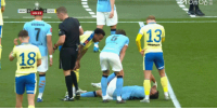 體育資訊04月26日訊 足總杯半決賽,曼城對陣南安普頓。41分鐘,努內斯倒地,經過隊醫檢查后繼續比賽。